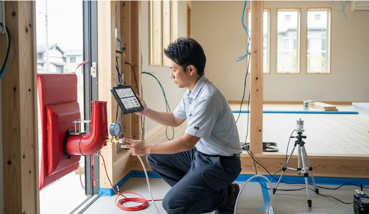 • C値測定が標準ではない:全棟で気密測定が義務付けられていないため、施主が積極的に要望しない限り、建てた家の正確なC値が分からないままになってしまう可能性があります。性能を確認するためには、オプションとして追加費用がかかる場合がほとんどです。
