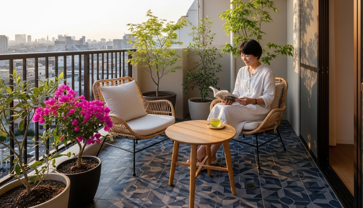 例えば、ベランダを「アウトドアリビング」として活用するアイデアがあります。おしゃれなガーデンファニチャーを配置し、植物を飾ることで、カフェのような雰囲気を演出することができます。休日の朝食をベランダで楽しんだり、友人との語らいの場として活用したりと、日常に豊かな時間をもたらしてくれるでしょう。防水対策をしっかり行い、タイルを清潔に保つことで、素足で歩ける心地よい空間が実現できます。