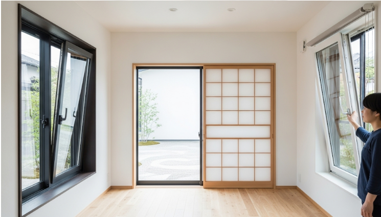 次に、高い気密性と断熱性を求めるのであれば、縦すべり出し窓や横すべり出し窓が有効でしょう。これらの窓は、窓枠全体が壁に密着して閉まるため、引き違い窓に比べて隙間が生じにくく、音や熱の出入りを抑える効果が期待できます。特に縦すべり出し窓は、雨の日でも少し開けて換気ができるというメリットもあり、私は非常に便利だと感じます。