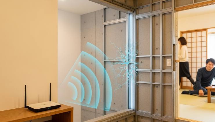 この2つの要素が、高い耐久性や耐火性、遮音性を実現している一方で、wifiの電波にとっては大きな障壁となってしまうのです。