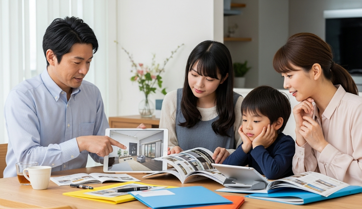 資料を家族と共有しやすいというメリットもあります。紙のカタログであれば、一緒にテーブルを囲んで意見を出し合ったり、気になるページに付箋を貼ったりと、アナログな方法でも検討を進めることができます。
