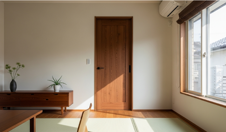 この際、ドア枠(ケーシング)も壁と同じ色にするか、枠のない「枠レス」仕様にすると、より一層すっきりとした印象になります。