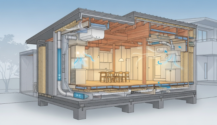他社との比較を行う上でまず注目すべきは、システムの「仕組み」です。全館空調には、大きく分けて「ダクト式」と「非ダクト式」があり、それぞれ特徴が異なります。土屋ホームの全館空調がどちらの方式を採用しているのか、またその方式がどのようなメリット・デメリットを持つのかを把握しておく必要があるでしょう。例えば、ダクト式は家全体に均一に空気を送ることが得意ですが、ダクトスペースが必要になることがあります。