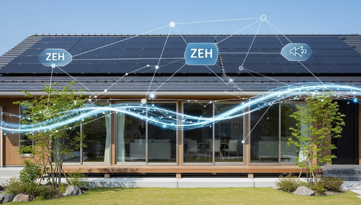 土屋ホームの全館空調システムは、単に快適なだけでなく、高い省エネ性能を誇り、ZEH(ゼッチ:ネット・ゼロ・エネルギー・ハウス)の実現にも貢献しています。ZEHとは、家庭で使用する一次エネルギー消費量を、太陽光発電などの再生可能エネルギーでまかなうことで、年間でのエネルギー収支を実質ゼロ以下にする住宅を指します。